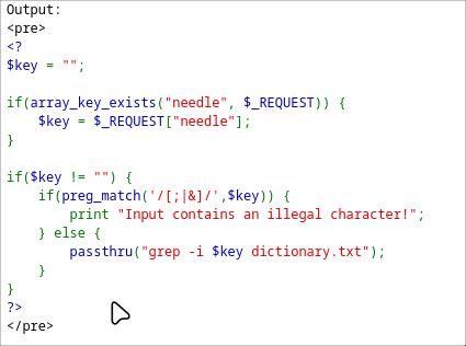 El servidor usa la función passthru() o system() para ejecutar un comando de shell (como grep).